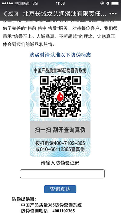 一、我公司生產(chǎn)的每一桶潤(rùn)滑油出廠時(shí)均會(huì)在桶身粘貼帶有二維碼的防偽標(biāo),如發(fā)現(xiàn)桶身沒(méi)有該標(biāo)志,請(qǐng)小心購(gòu)買(mǎi)并及時(shí)聯(lián)系我們。